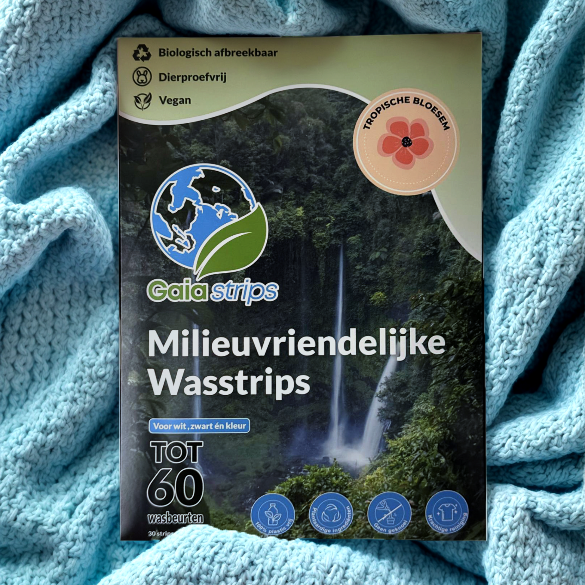 Gaia Strips zijn milieuvriendelijke wasmiddelstrips die zonder plastic verpakt zijn en volledig biologisch afbreekbaar zijn. Ze bieden een duurzaam alternatief voor traditioneel wasmiddel en bevatten geen schadelijke chemicaliën.