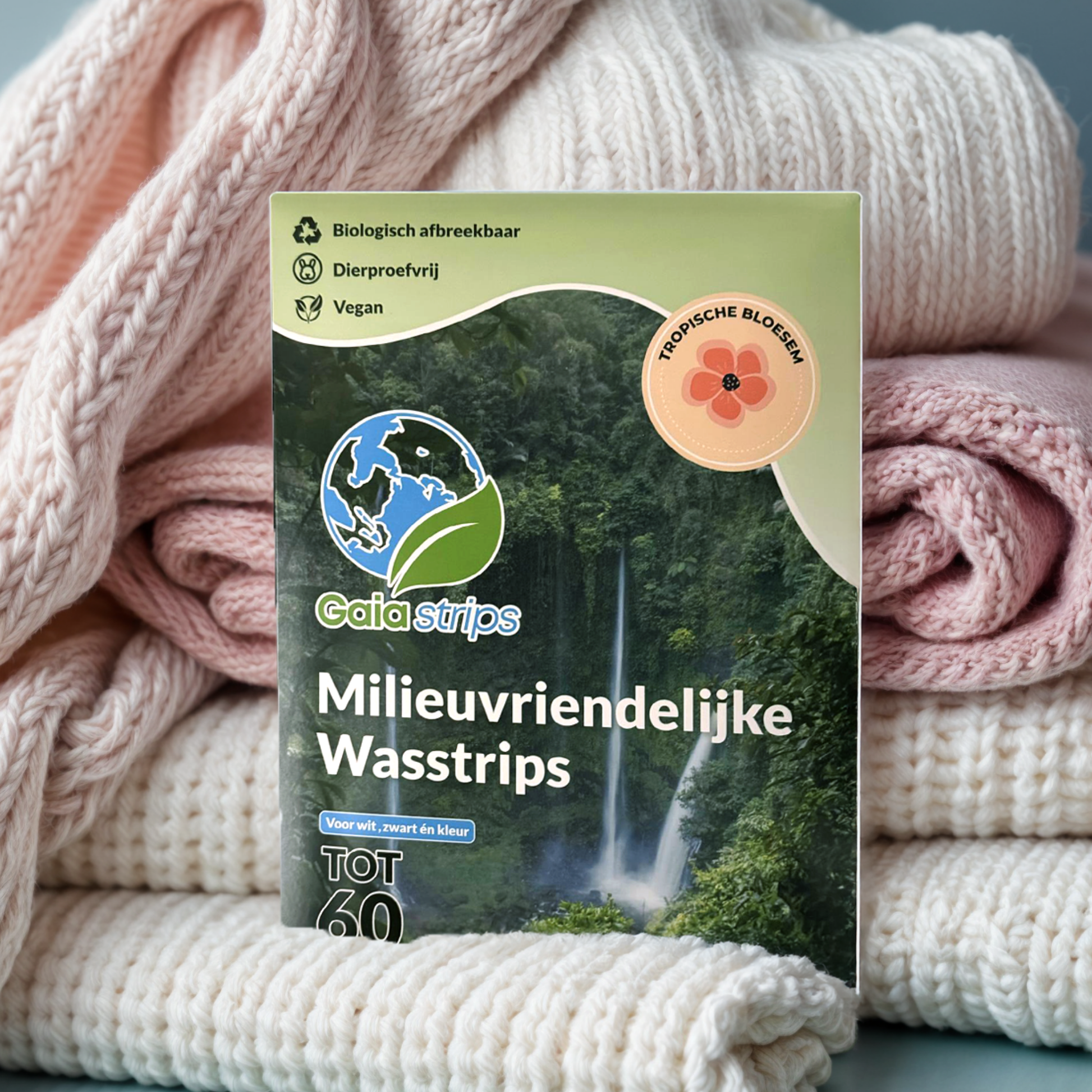 Onze wasmiddelstrips zijn geschikt voor alle soorten was: zwart, wit en gekleurde was. Ze werken in zowel warme als koude wasprogramma’s. Je kunt voor elke was GaiaStrips gebruiken!